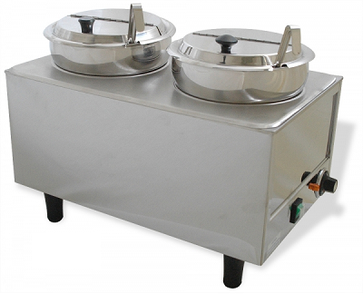 Winco 51072P Benchmark Dual Well Warmer 2 Well 7 Qt Stainless Steel Adjustable Thermostat 1200 Watts
