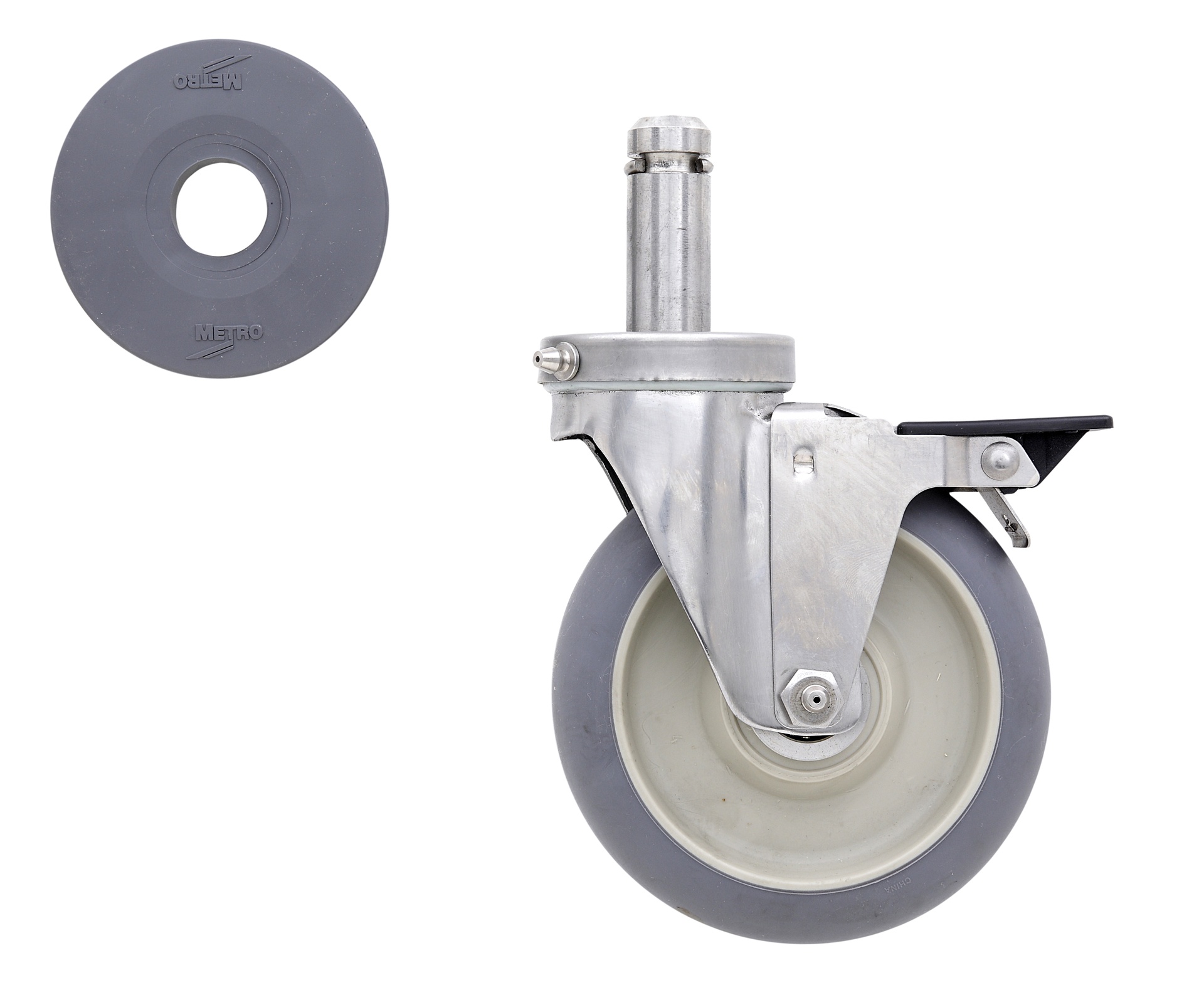 Metro 5MDBGSA 5" High Modulus Donut Cart-Washable Swivel/Brake Stem Caster for Super Erecta Industrial Wire Shelving Racks