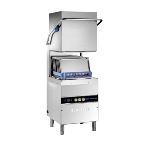 Dishwasher, hood type, 28-3/8"W, 180° temperature sanitizing rinse, 9.8kW booster heater, up to (30) racks per hour, built-in detergent & rise-aid pumps, hood operated stop/start, drain pump, upper & lower revolving type wash sprays, triple filter system, 304 stainless steel interior & exterior, 316 stainless steel tank, 2.94kW electric tank heat, 1-1/2 HP, cETLus, ETL-Sanitation| Brand | Blakeslee |