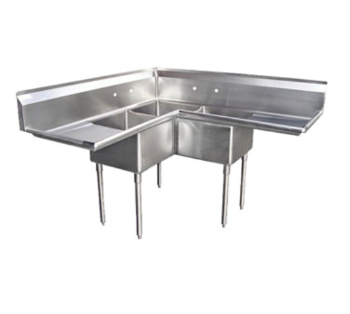Blue Air 3C18-12L-2D Commercial 3 Compartment Sink with Drainboards and Stainless Steel Construction