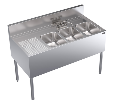 Krowne Metal Corporation KR24-43R Royal Series Underbar Sink Unit 48W x 24D Three Compartment with Drainboard and Faucet