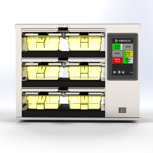 - Heated airflow cascades over food products for perfect holding environments