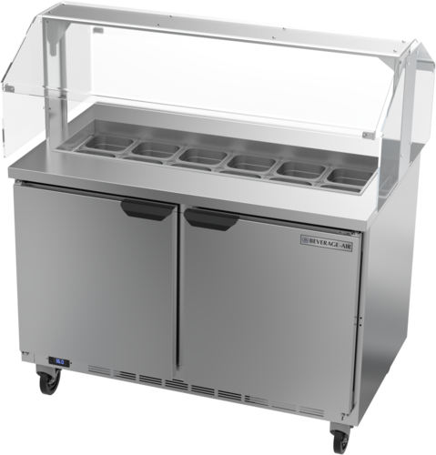 Beverage Air SPE48HC-12-SNZ Sandwich Top Refrigerated Counter with Sneezeguard 48 inch Two Section Stainless Steel