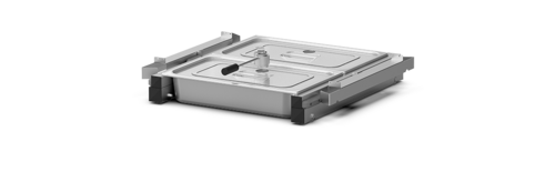 This product is a trolley with fat collection pans designed for use with stacked ovens. It includes fat collection pans that help in managing grease and drippings efficiently. The trolley is specifically used with the ChefTop MIND.Maps™ Plus ovens.