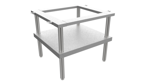 This product is an equipment stand designed for professional kitchens. It includes an open top, undershelf, and 6" adjustable legs, all constructed from stainless steel. The stand is sturdy and durable, making it suitable for supporting various kitchen equipment.